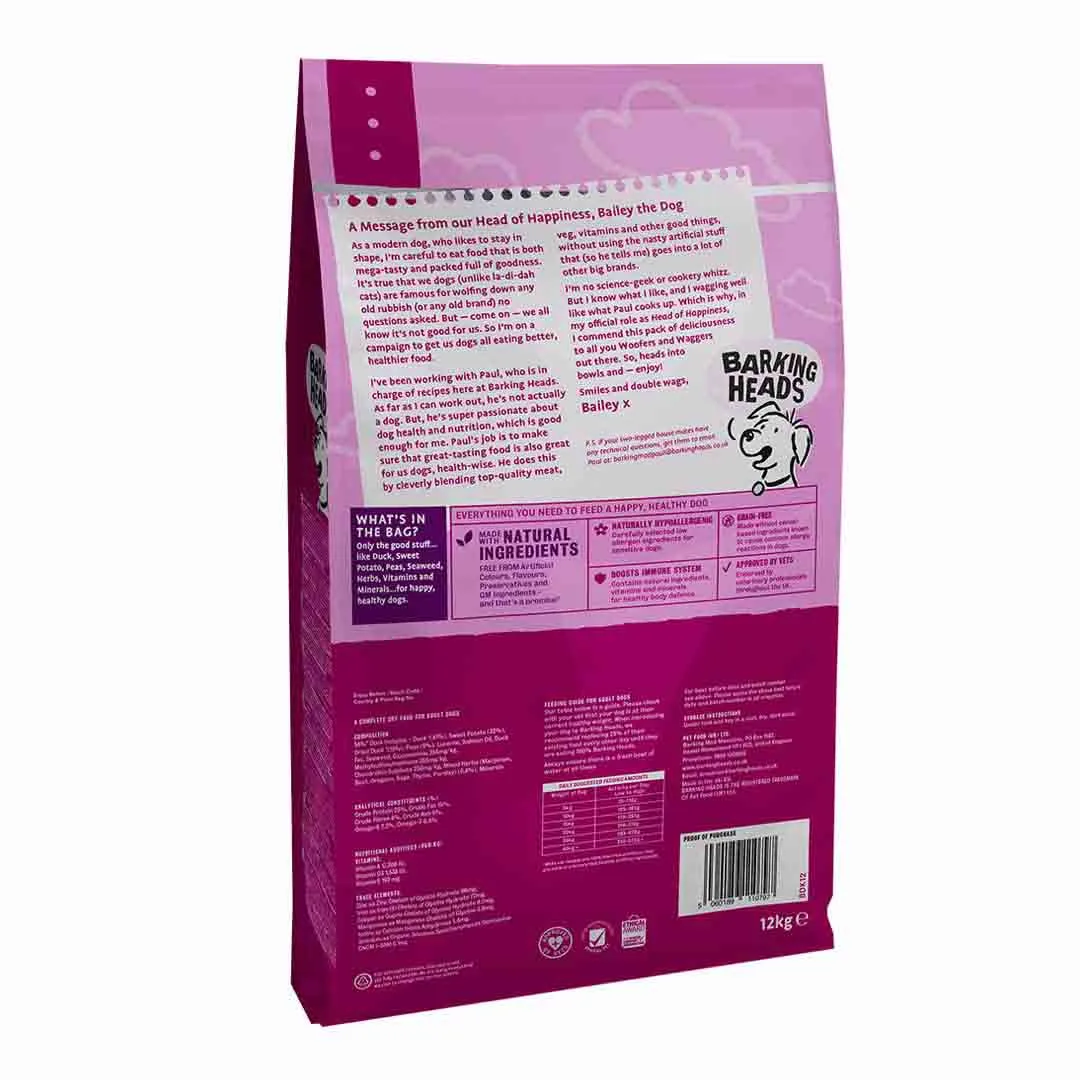 Duck (41%), Sweet Potato (32%), Dried Duck (15%), Peas (9%), Lucerne, Salmon Oil, Duck Fat, Seaweed, Glucosamine, Methylsulfonylmethane, Chondroitin Sulphate, Mixed Herbs (Marjoram, Basil, Oregano, Sage, Thyme, Parsley) (0.4%), Minerals
