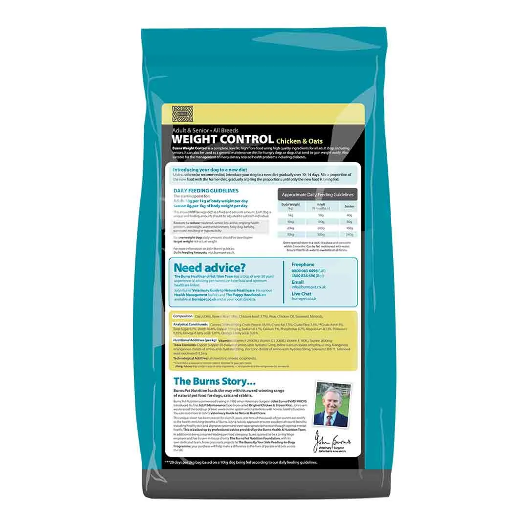 The Weight Control Chicken & Oats is ideal for overweight dogs. It can be used as a general maintenance diet for hungry dogs or dogs that tend to gain weight easily. Naturally high in fibre and made with wholegrain oats it gives a steady release of energy which can help dogs to feel fuller for longer.