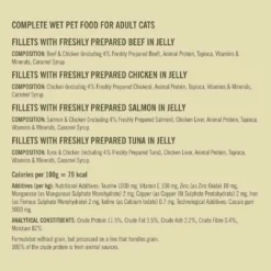 Beef & Chicken (including Freshly Prepared Beef) (4%), Animal Protein, Tapioca, Vitamins & Minerals, Caramel Syrup, Chicken (including Freshly Prepared Chicken) (4%), Animal Protein, Tapioca, Vitamins & Minerals, Caramel Syrup, Salmon & Chicken (including Freshly Prepared Salmon) (4%), Chicken Liver, Animal Protein, Tapioca, Vitamins & Minerals, Caramel Syrup, Tuna & Chicken (including Freshly Prepared Tuna) (4%), Chicken Liver, Animal Protein, Tapioca, Vitamins & Minerals, Caramel Syrup