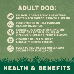 Salmon & Meat Meals (26%), Dried Salmon (6.5%), Maize, Potato (14%), Rice, Barley, Poultry Fat, Poultry Gravy, Linseed, Maize Protein, Beet Pulp, Minerals, Seaweed (0.1%), FOS (0.1%), Yucca Extract (0.01%)