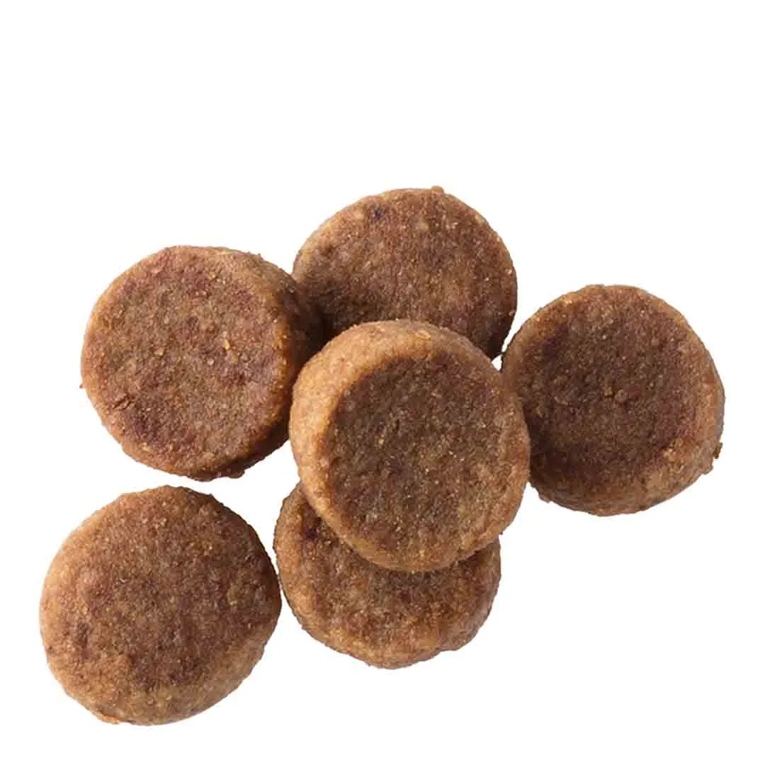 Maize, chicken and turkey meal, brewers’ rice, digest, animal fat, dried whole egg, cellulose, dried beet pulp, minerals, flaxseed, fish oil, vegetable oil