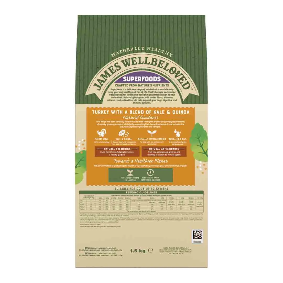 James Wellbeloved Superfoods Puppy/Junior Turkey with Kale & Quinoa 1.5kg