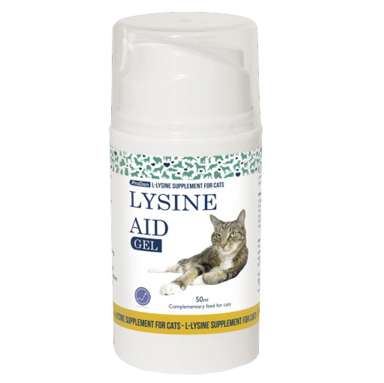 Lysine Aid Gel for Cats 50ml. LysineAid is a very palatable and easy to give gel specifically for cats. Feline rhinotracheitis virus (feline herpesvirus type 1 or FHV-1) causes acute respiratory illness known as rhinotracheitis (or feline herpesvirus infection). The virus affects domestic and wild cats worldwide. FHV-1 is the most common viral infection affecting cats with an estimated incidence of FHV-1 of 50% of household cats. 50ml Salmon flavoured gel with oral measurements for ease of use.