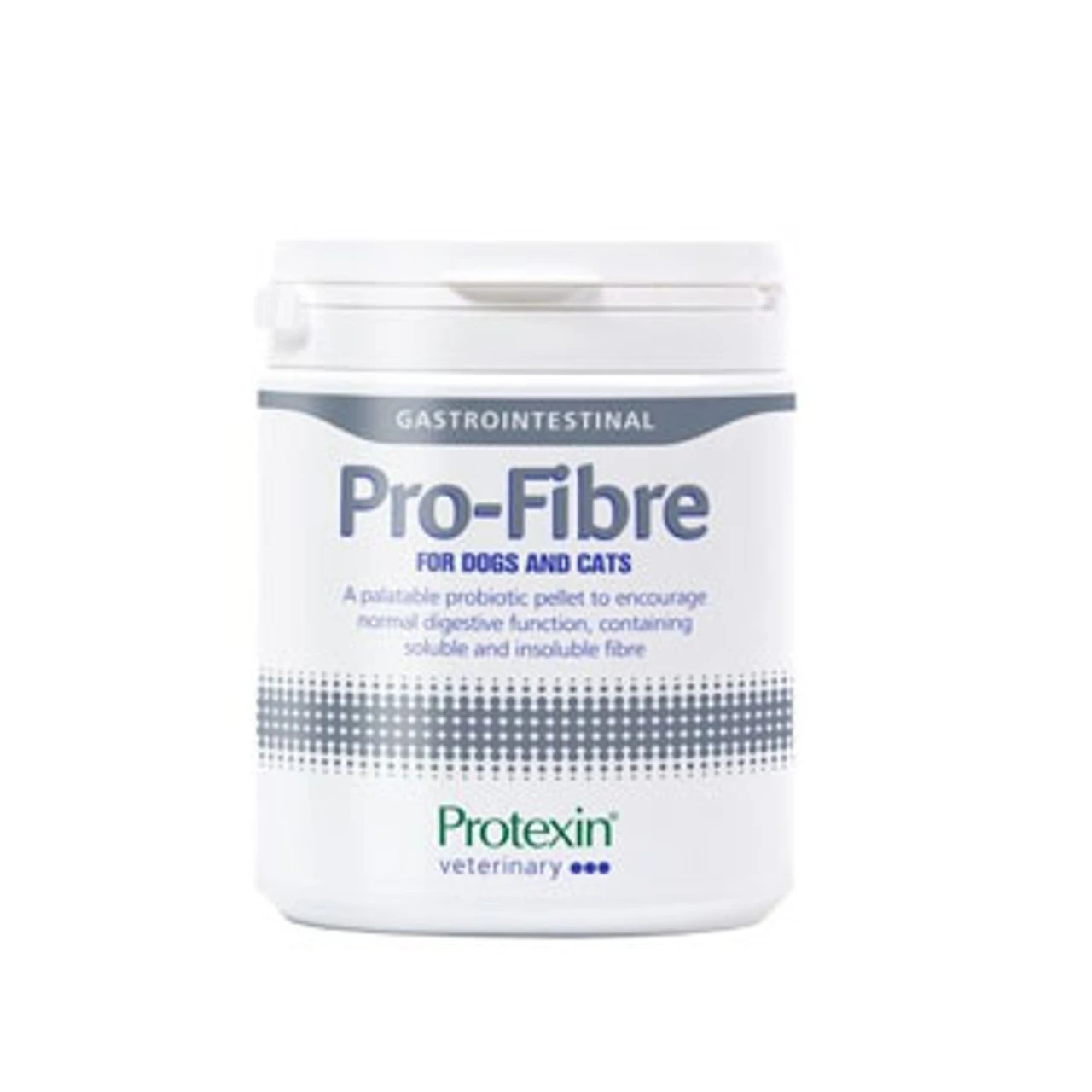 High levels of both soluble and insoluble fibre with new fibre sources including psyllium and sugar beet pulp. Pro-Fibre now has higher levels of dietary fibre (45%) to help bulk the stools out.