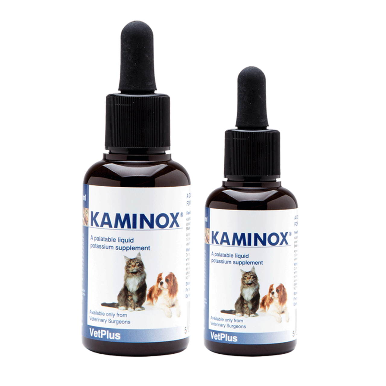 A tasty liquid supplement designed to help support cats with signs of poor kidney function which can cause low potassium blood levels. Kaminox contains potassium, vitamins, amino acids and iron to support many aspects of your cats health.